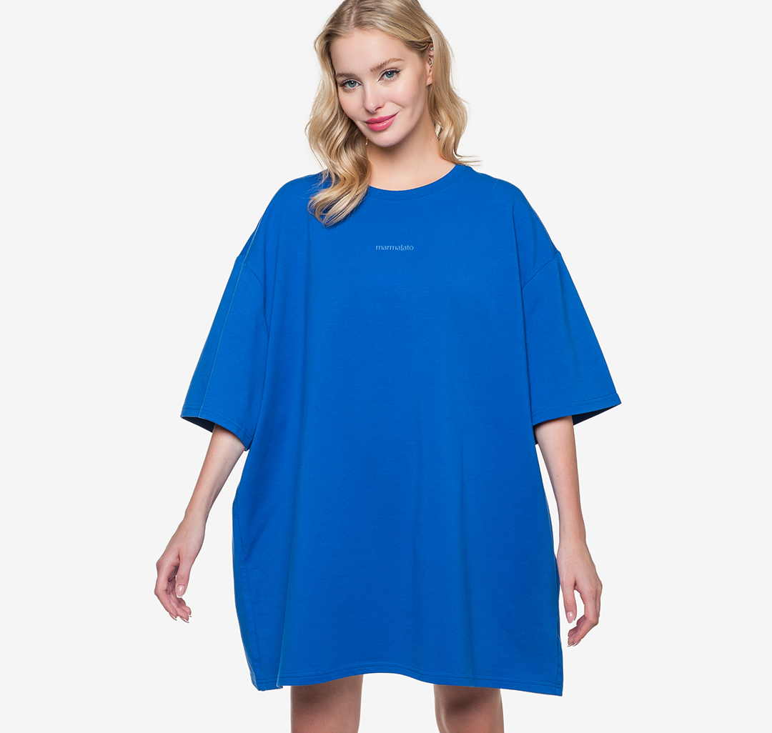 С платьем-футболкой MARMALATO легко создавать комфортные образы в стиле спорт-темы. Свободная посадка, объёмный силуэт и удобная длина. Для пошива изделия был выбран мягкий петельчатый хлопок.