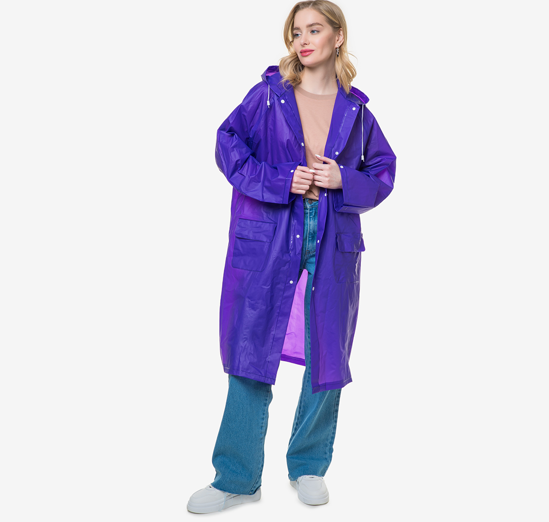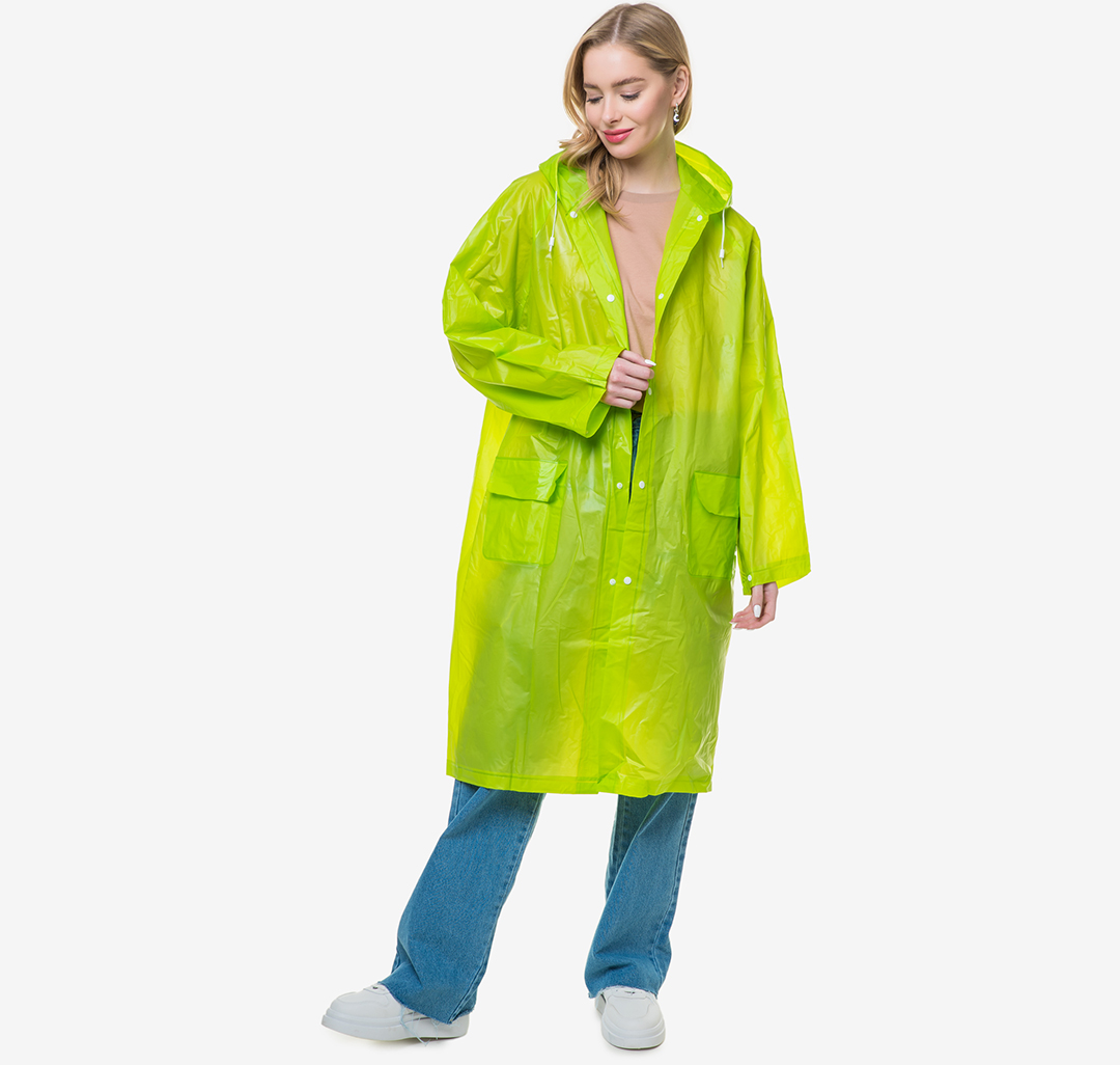 Дождевик - это изделие, которое создаст комфорт и легкость движения в непогоду.Модель с глубоким капюшоном изготовлен из прочного водонепроницаемого материала. Изделие дополнено двумя карманами и застежками на кнопки. В комплекте идет стильный чехол для хранения.