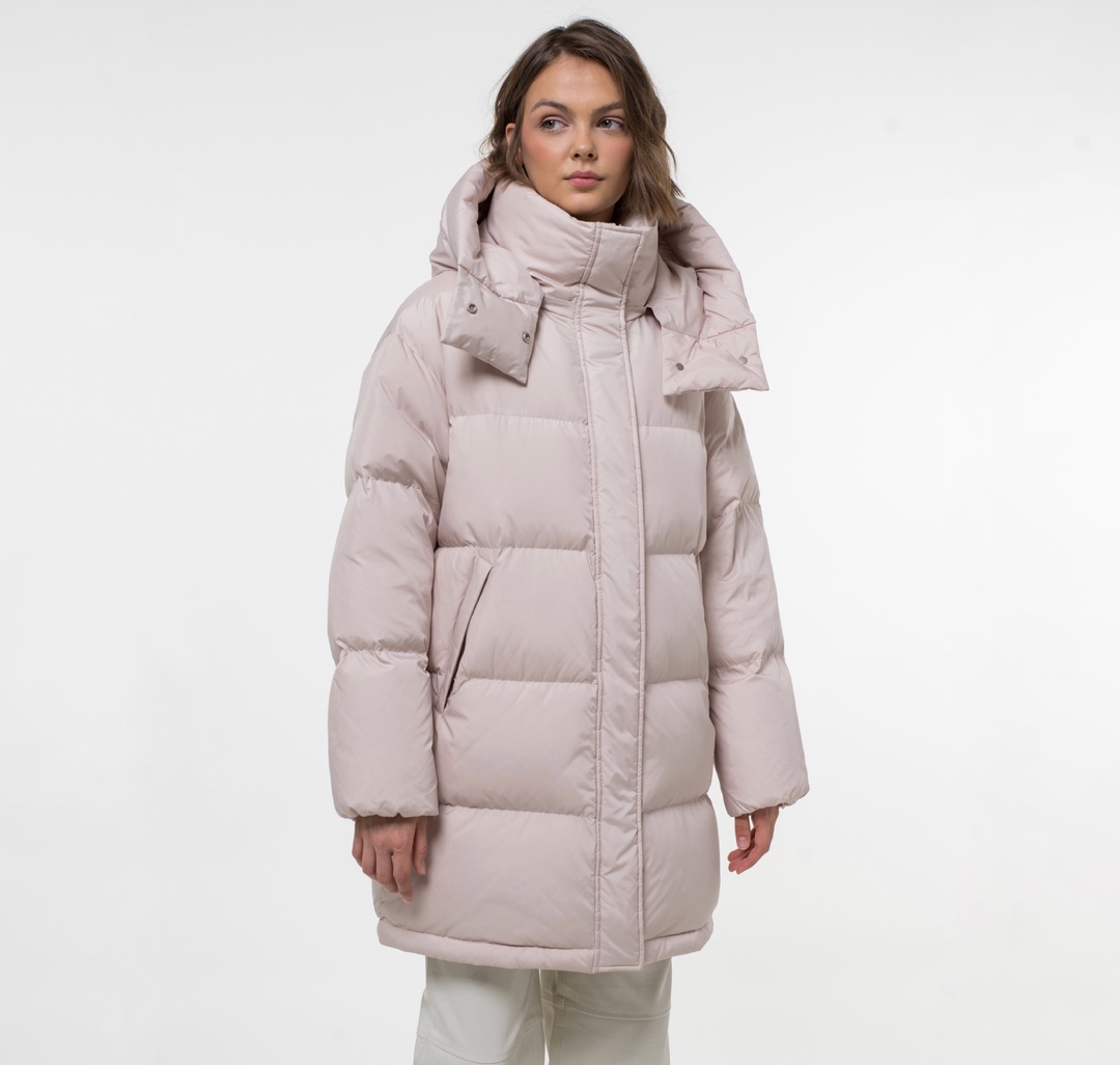 Базовый пуховик актуальной посадки оверсайз, длиной до середины бедра, с воротником-стойкой и практичным съемным капюшоном. Модель доступна в нескольких нейтральных расцветках.