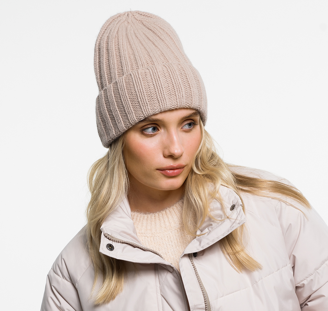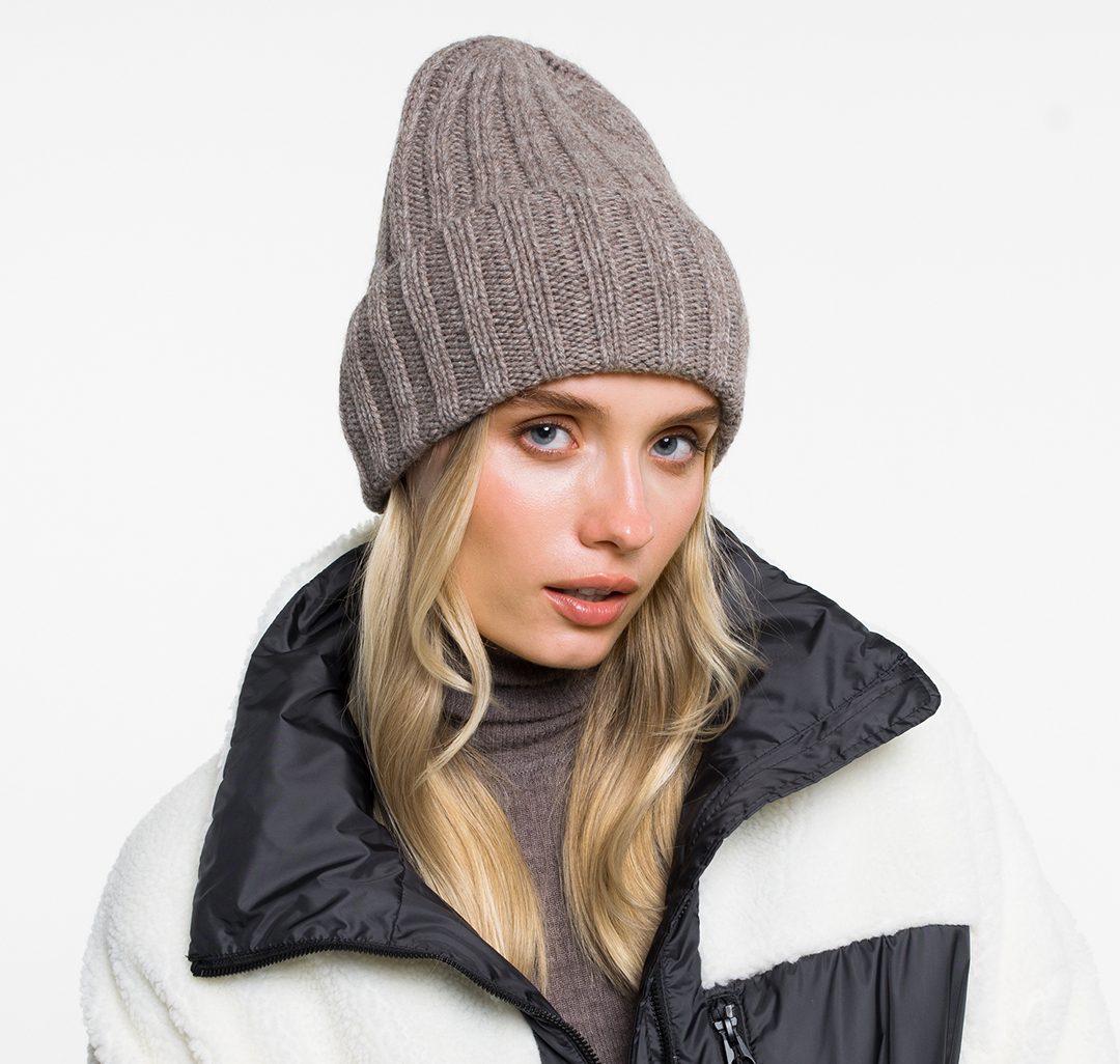 Состав — комбинация кашемира, шерсти и вискозы. Это оптимальное сочетание тканей для демисезонной шапки, оно обеспечивает комфортность, мягкость, эластичность и практичность модели.