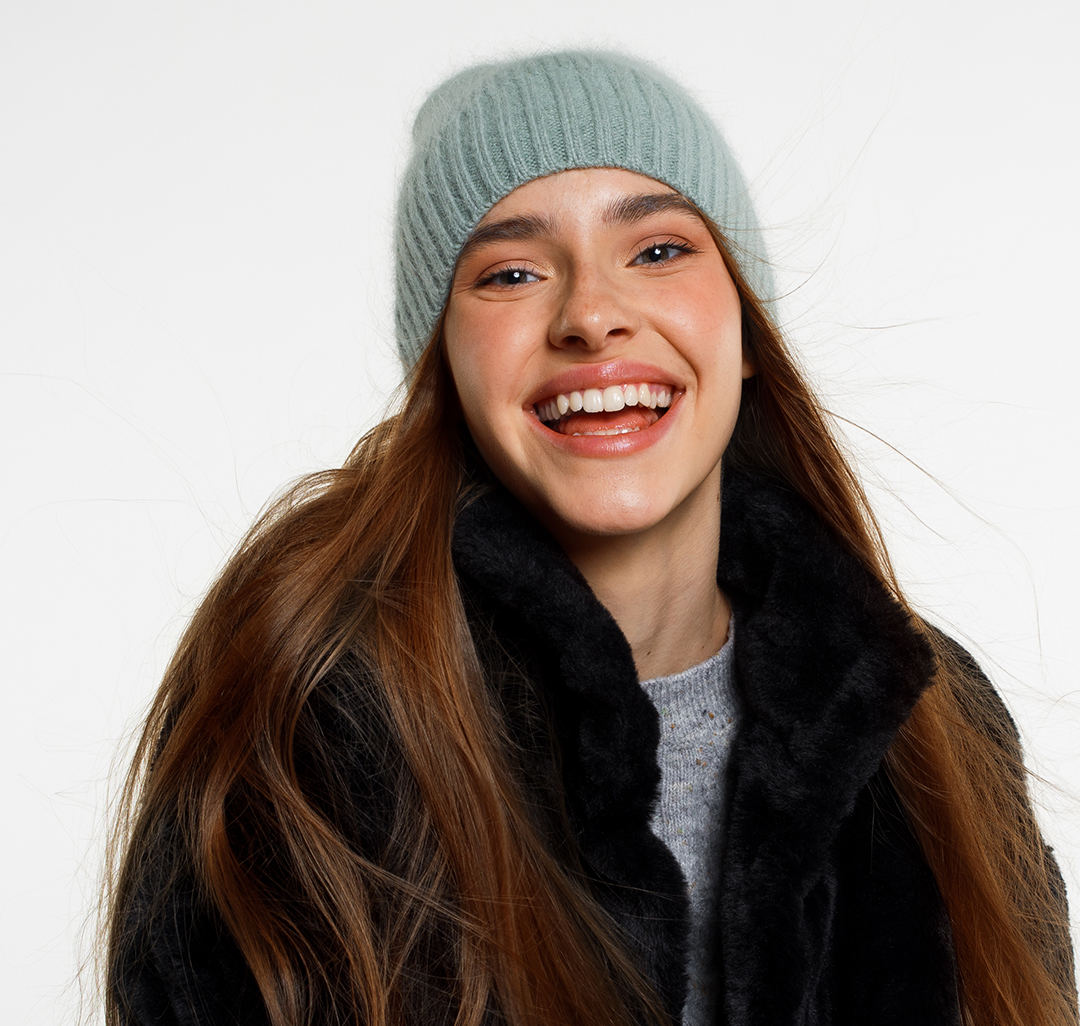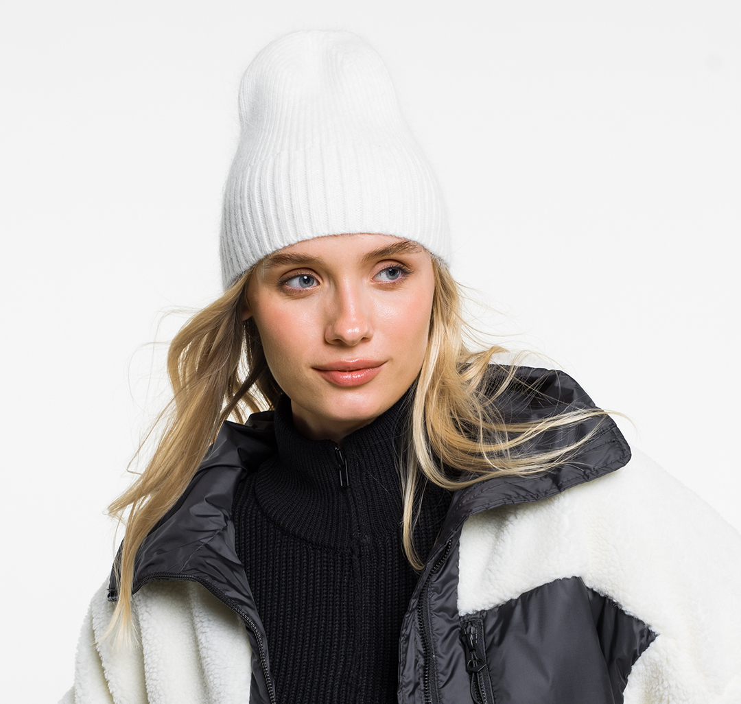 Шапка-бини с отворотом и комбинацией фактуры в средний и мелкий рубчик. Модель доступна в широкой палитре — как в базовых цветах, так и в самых актуальных оттенках этого сезона.