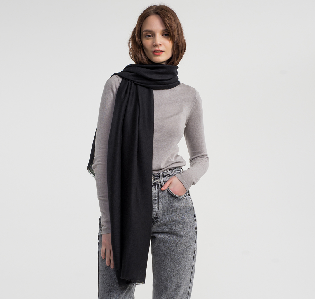 Базовая модель палантина с короткой бахромой, в сдержанных спокойных цветах. Это настоящая классика, которая не потеряет актуальности со временем и легко интегрируется в любой гардероб.
